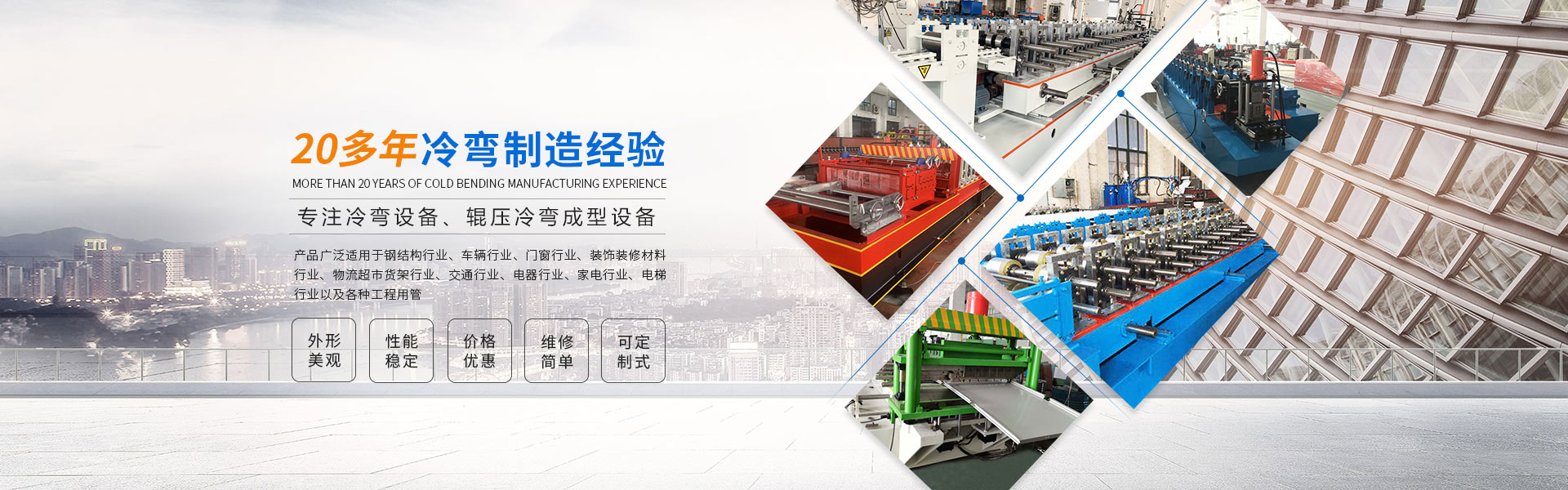 無錫市翔匯恒冷彎機械有限公司,擁有一批專業技術人員,完善的銷售服務系統,優良的辦公環境。以“質量求生存,信譽求發展”為工作宗旨,本公司制造的各類產品品質優價廉。本公司專業設計、開發、制造77、90、120等各類歐式、澳式卷簾門、車庫門、成型機。各類型材產品及各類冷彎機組軋輥、汽車玻璃升降器、C型鋼、防盜門流水線、彩鋼瓦、墻面板、高頻焊管、不銹鋼異型管機組等。其產品廣泛適用于鋼結構行業、車輛行業、門窗行業、裝飾裝修材料行業、物流超市貨架行業、交通行業...